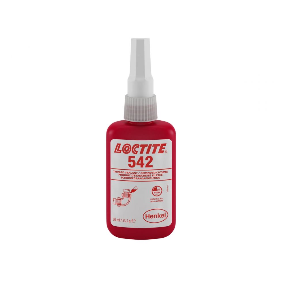 LOCTITE® 542 ir izstrādāts metāla cauruļu un savienojuma elementu, kā arī citu cilindrisku metāla montāžas mezglu nofiksēšanai un noblīvēšanai. Produkts sacietē, kolīdz ir nonācis starp cieši pieguļošām metāla virsmām bez gaisa klātbūtnes, un novērš trieciena un vibrāciju izraisītu atskrūvēšanos vai noplūdes. LOCTITE 542 tiksotropā daba mazina šķidrā izstrādājuma migrēšanu pēc uzklāšanas uz detaļas.